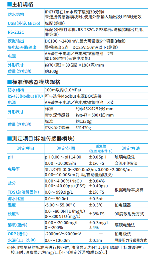 ●可在100m水深下進(jìn)行測定(離子除外)。